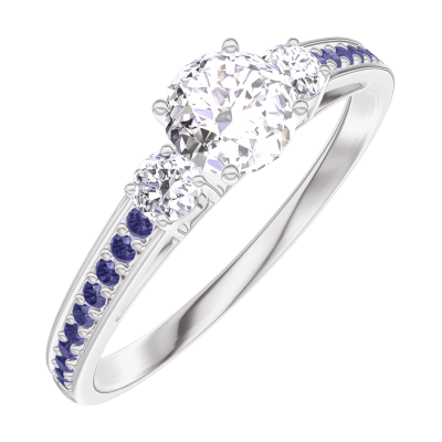 « L'ATELIER » N. 180035Anello Oro bianco 18 carati - Diamante di laboratorio Rotonda 0.3 Carati - Pietre laterali Diamante di laboratorio - Incastonatura Zaffiro blu 4.5