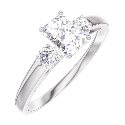« L'ATELIER » N. 180223Anello Oro bianco 18 carati - Diamante di laboratorio Rettangolo 0.3 Carati - Pietre laterali Diamante di laboratorio