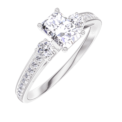 « L'ATELIER » N. 180228Anello Oro bianco 9 carati - Diamante di laboratorio Rettangolo 0.3 Carati - Pietre laterali Diamante di laboratorio - Incastonatura Diamante di laboratorio