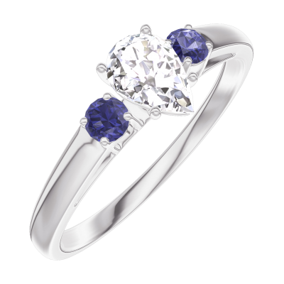 « L'ATELIER » N. 180464Anello Oro bianco 9 carati - Diamante di laboratorio Goccia 0.3 Carati - Pietre laterali Zaffiro blu