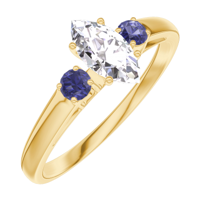 « L'ATELIER » N. 180561Anello Oro giallo 18 carati - Diamante di laboratorio Marchesa 0.3 Carati - Pietre laterali Zaffiro blu