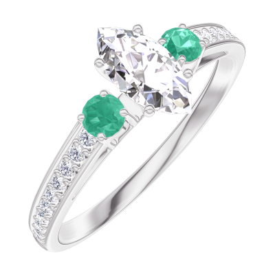 « L'ATELIER » Nº180588Anello Oro bianco 9 carati - Diamante di laboratorio Marchesa 0.3 Carati - Pietre laterali Smeraldo - Incastonatura Diamante di laboratorio
