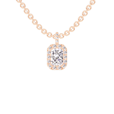 « L'ATELIER » N. 181001Ciondolo Oro rosa 9 carati - Diamante di laboratorio Rettangolo 0.3 Carati - Halo Diamante di laboratorio - Incastonatura Diamante di laboratorio - Catena Rolò