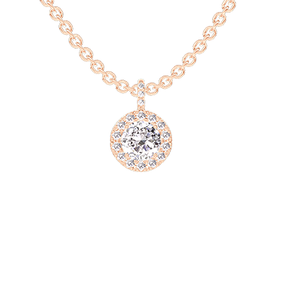 « L'ATELIER » N. 181193Ciondolo Oro rosa 9 carati - Diamante di laboratorio Rotonda 0.3 Carati - Halo Diamante di laboratorio - Incastonatura Diamante di laboratorio - Catena Rolò 4