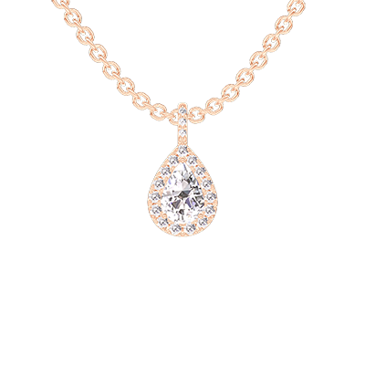 « L'ATELIER » N. 181385Ciondolo Oro rosa 9 carati - Diamante Goccia 0.3 Carati - Halo Diamante - Incastonatura Diamante - Catena Rolò