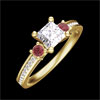 « L'ATELIER » N. 182545Anello Oro giallo 18 carati - Diamante di laboratorio Principessa 0.5 Carati - Pietre laterali Rubino - Incastonatura Diamante di laboratorio