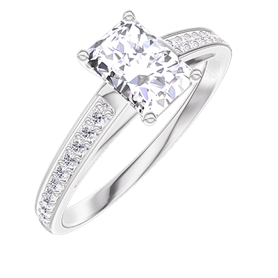 « L'ATELIER » N. 182608Anello Oro bianco 9 carati - Diamante di laboratorio Rettangolo 0.5 Carati - Incastonatura Diamante di laboratorio