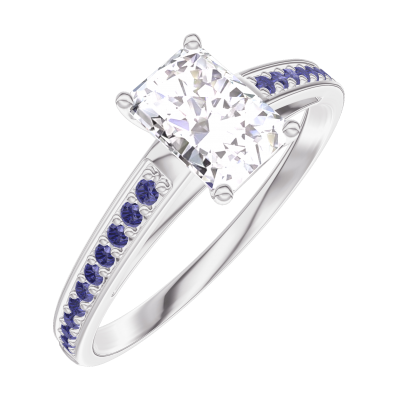 Anello Oro bianco 9 carati - Diamante di laboratorio Rettangolo 0.5 Carati - Incastonatura Zaffiro blu