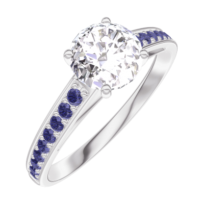 « L'ATELIER » N. 184816Anello Oro bianco 9 carati - Diamante di laboratorio Rotonda 0.7 Carati - Incastonatura Zaffiro blu 4.9 (7)