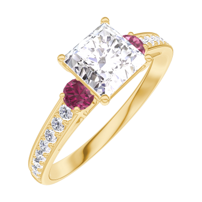 « L'ATELIER » N. 184946Anello Oro giallo 9 carati - Diamante di laboratorio Principessa 0.7 Carati - Pietre laterali Rubino - Incastonatura Diamante di laboratorio