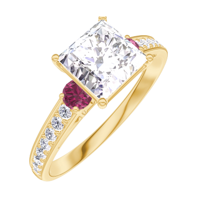 « L'ATELIER » N. 187345Anello Oro giallo 18 carati - Diamante di laboratorio Principessa 1 Carati - Pietre laterali Rubino - Incastonatura Diamante di laboratorio