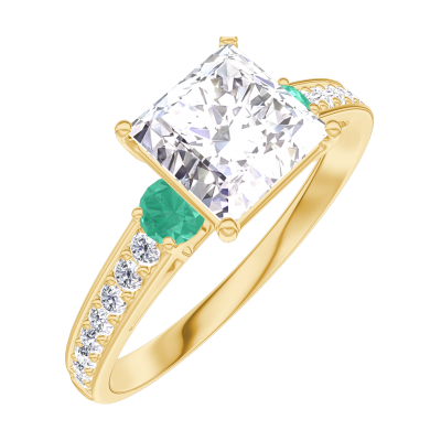 « L'ATELIER » Nº187385Anello Oro giallo 18 carati - Diamante di laboratorio Principessa 1 Carati - Pietre laterali Smeraldo - Incastonatura Diamante di laboratorio