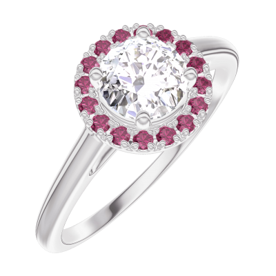 « L'ATELIER » N. 190020Anello Oro bianco 9 carati - Diamante di laboratorio Rotonda 0.5 Carati - Halo Rubino 4.7