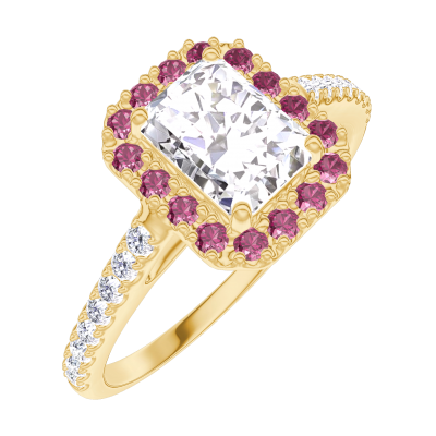 « L'ATELIER » Nº190118Anello Oro giallo 9 carati - Diamante di laboratorio Rettangolo 0.5 Carati - Halo Rubino - Incastonatura Diamante di laboratorio 4.7