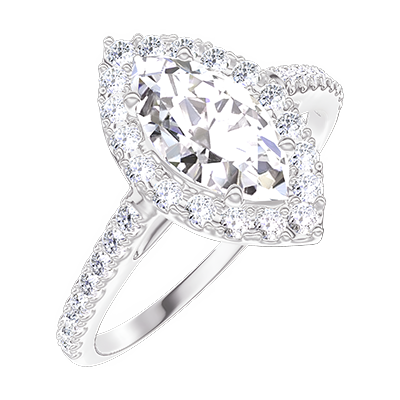 « L'ATELIER » N. 190247Anello Oro bianco 18 carati - Diamante di laboratorio Marchesa 0.5 Carati - Halo Diamante di laboratorio - Incastonatura Diamante di laboratorio