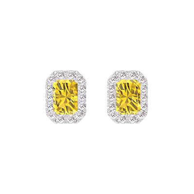 « L'ATELIER » N. 194998Orecchini Oro bianco 18 carati - Zaffiro giallo Rettangolo 0.3 Carati (2 X) - Halo Diamante