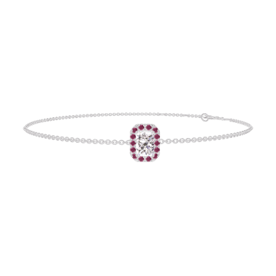 « L'ATELIER » Nº200083Bracciale Oro bianco 18 carati - Diamante Rettangolo 0.3 Carati - Halo Rubino - Catena Rolò