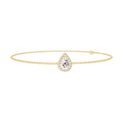 « L'ATELIER » N. 200138Bracciale Oro giallo 9 carati - Diamante Goccia 0.3 Carati - Halo Diamante - Catena Rolò