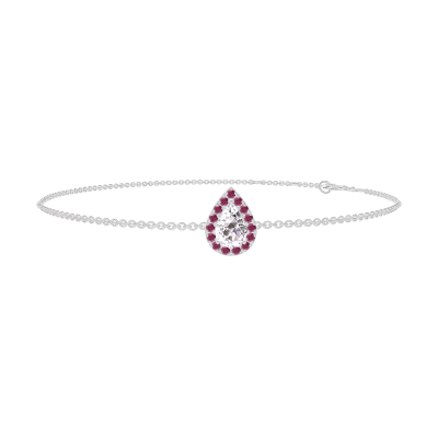 « L'ATELIER » N. 200340Bracciale Oro bianco 9 carati - Diamante di laboratorio Goccia 0.3 Carati - Halo Rubino - Catena Rolò