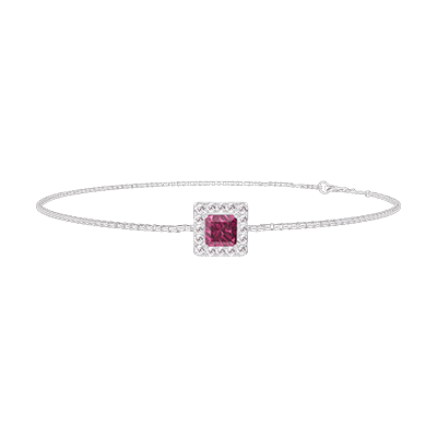 « L'ATELIER » Nº200431Bracciale Oro bianco 18 carati - Rubino Principessa 0.3 Carati - Halo Diamante - Catena Veneziana