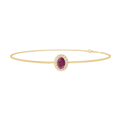 « L'ATELIER » Nº200494Bracciale Oro giallo 9 carati - Rubino Ovale 0.3 Carati - Halo Diamante - Catena Veneziana