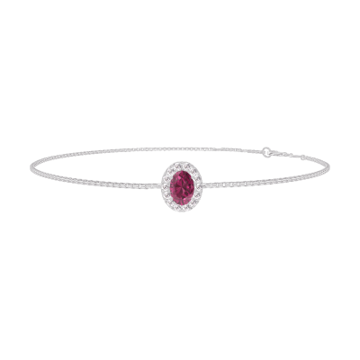 « L'ATELIER » Nº200495Bracciale Oro bianco 18 carati - Rubino Ovale 0.3 Carati - Halo Diamante - Catena Veneziana