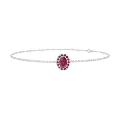 « L'ATELIER » N. 200499Bracciale Oro bianco 18 carati - Rubino Ovale 0.3 Carati - Halo Rubino - Catena Rolò