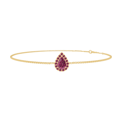 « L'ATELIER » N. 200534Bracciale Oro giallo 9 carati - Rubino Goccia 0.3 Carati - Halo Rubino - Catena Veneziana