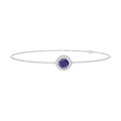 « L'ATELIER » N. 200588Bracciale Oro bianco 9 carati - Zaffiro blu Rotonda 0.3 Carati - Halo Diamante - Catena Rolò 4.7