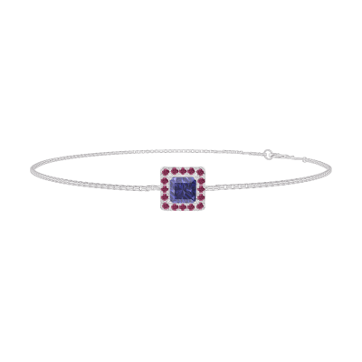 « L'ATELIER » Nº200632Bracciale Oro bianco 9 carati - Zaffiro blu Principessa 0.3 Carati - Halo Rubino - Catena Veneziana