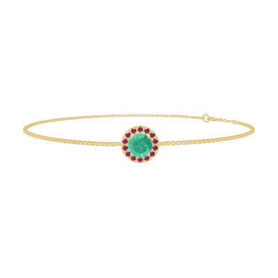 « L'ATELIER » N. 200790Bracciale Oro giallo 9 carati - Smeraldo Rotonda 0.3 Carati - Halo Rubino - Catena Veneziana 4.7