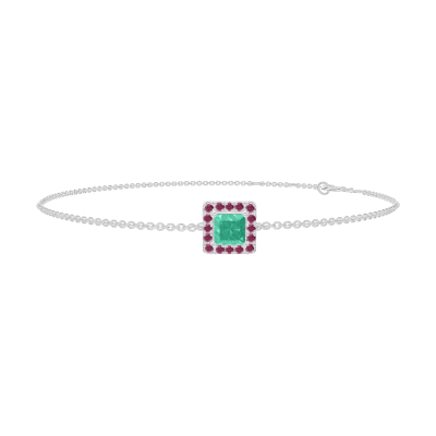 « L'ATELIER » N. 200819Bracciale Oro bianco 18 carati - Smeraldo Principessa 0.3 Carati - Halo Rubino - Catena Rolò