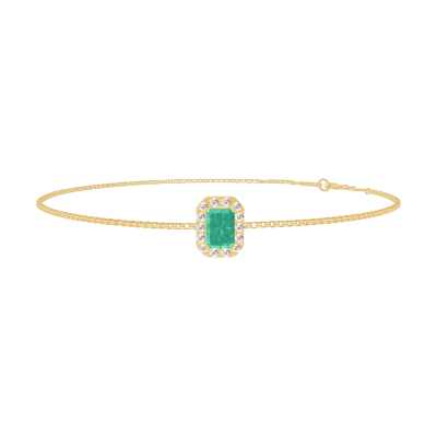 « L'ATELIER » N. 200845Bracciale Oro giallo 18 carati - Smeraldo Rettangolo 0.3 Carati - Halo Diamante - Catena Veneziana