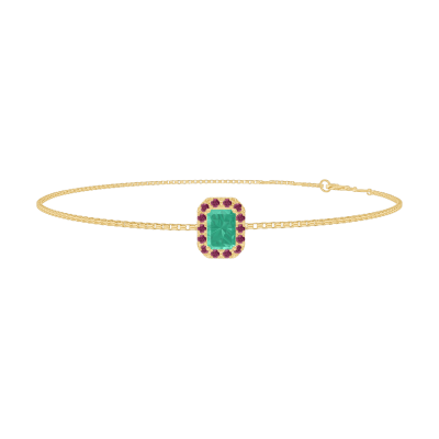 « L'ATELIER » Nº200854Bracciale Oro giallo 9 carati - Smeraldo Rettangolo 0.3 Carati - Halo Rubino - Catena Veneziana