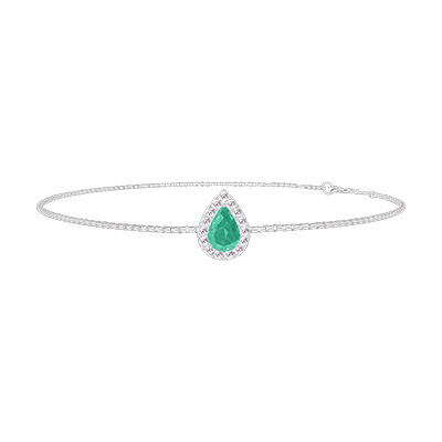 « L'ATELIER » Nº200912Bracciale Oro bianco 9 carati - Smeraldo Goccia 0.3 Carati - Halo Diamante - Catena Veneziana