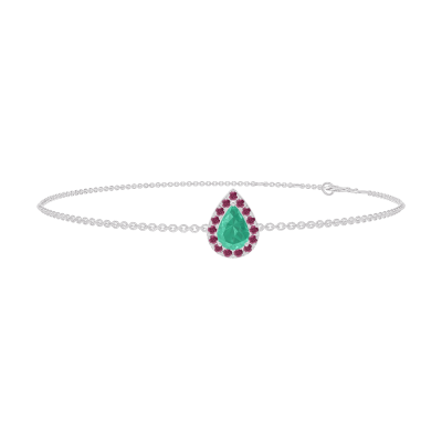 « L'ATELIER » N. 200916Bracciale Oro bianco 9 carati - Smeraldo Goccia 0.3 Carati - Halo Rubino - Catena Rolò
