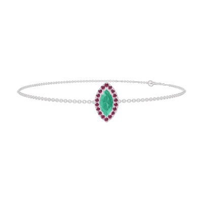 « L'ATELIER » N. 200947Bracciale Oro bianco 18 carati - Smeraldo Marchesa 0.3 Carati - Halo Rubino - Catena Rolò