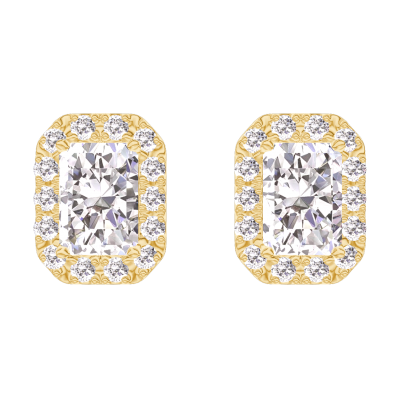 « L'ATELIER » N. 201094Orecchini Oro giallo 9 carati - Diamante di laboratorio Rettangolo 0.3 Carati (2 X) - Halo Diamante di laboratorio