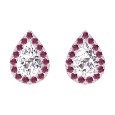 « L'ATELIER » Nº201132Orecchini Oro bianco 9 carati - Diamante di laboratorio Goccia 0.3 Carati (2 X) - Halo Rubino