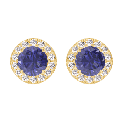 « L'ATELIER » Nº201254Orecchini Oro giallo 9 carati - Zaffiro blu Rotonda 0.3 Carati (2 X) - Halo Diamante 5