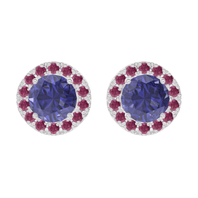 « L'ATELIER » N. 201260Orecchini Oro bianco 9 carati - Zaffiro blu Rotonda 0.3 Carati (2 X) - Halo Rubino 5