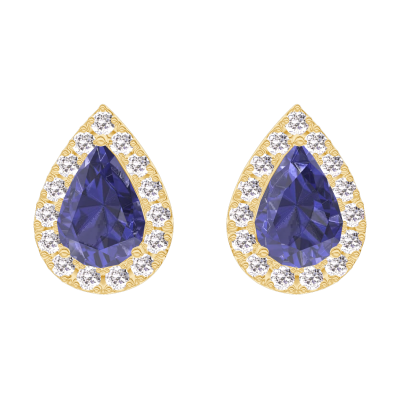 « L'ATELIER » Nº201317Orecchini Oro giallo 18 carati - Zaffiro blu Goccia 0.3 Carati (2 X) - Halo Diamante