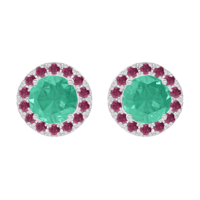 « L'ATELIER » Nº201356Orecchini Oro bianco 9 carati - Smeraldo Rotonda 0.3 Carati (2 X) - Halo Rubino 5