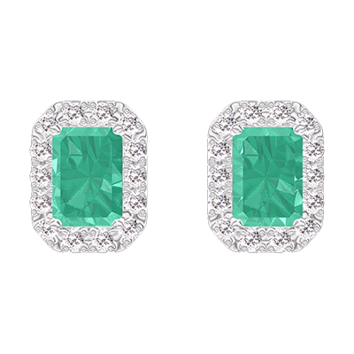« L'ATELIER » N. 201384Orecchini Oro bianco 9 carati - Smeraldo Rettangolo 0.3 Carati (2 X) - Halo Diamante