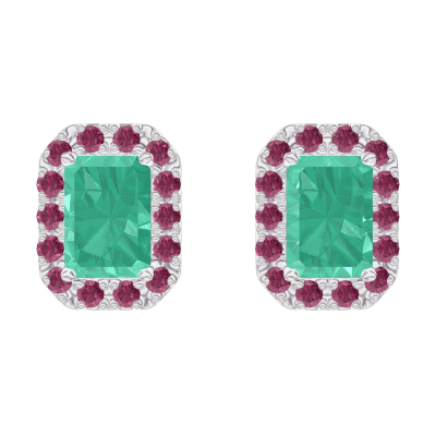 « L'ATELIER » Nº201387Orecchini Oro bianco 18 carati - Smeraldo Rettangolo 0.3 Carati (2 X) - Halo Rubino