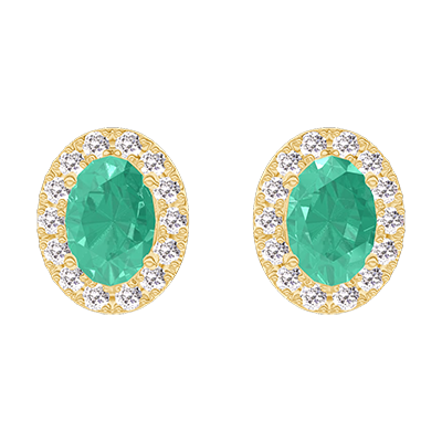 « L'ATELIER » Nº201398Orecchini Oro giallo 9 carati - Smeraldo Ovale 0.3 Carati (2 X) - Halo Diamante