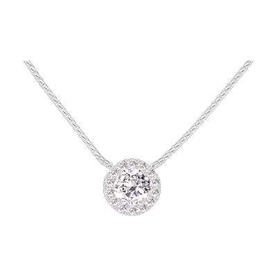 « L'ATELIER » Nº201456Collana Oro bianco 9 carati - Diamante Rotonda 0.3 Carati - Halo Diamante - Catena Veneziana