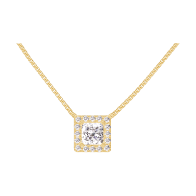 « L'ATELIER » N. 201486Collana Oro giallo 9 carati - Diamante Principessa 0.3 Carati - Halo Diamante - Catena Veneziana