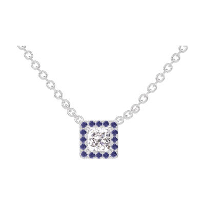 « L'ATELIER » N. 201500Collana Oro bianco 9 carati - Diamante Principessa 0.3 Carati - Halo Zaffiro blu - Catena Rolò