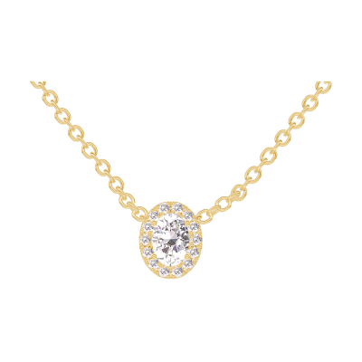 « L'ATELIER » N. 201546Collana Oro giallo 9 carati - Diamante Ovale 0.3 Carati - Halo Diamante - Catena Rolò